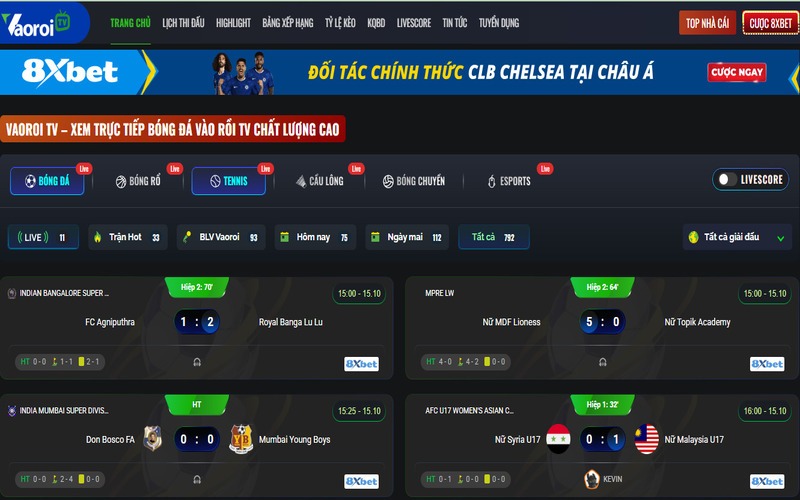 Vaoroi TV là một nền tảng xem bóng đá trực tuyến miễn phí được nhiều người biết đến trong cộng đồng yêu bóng đá Việt Nam. Trang web cung cấp link xem trực tiếp cho hàng loạt giải đấu lớn nhỏ trên toàn cầu, bao gồm cả những trận đấu hot nhất như Manchester United vs Liverpool, Barcelona vs Real Madrid hay trận chung kết Champions League.